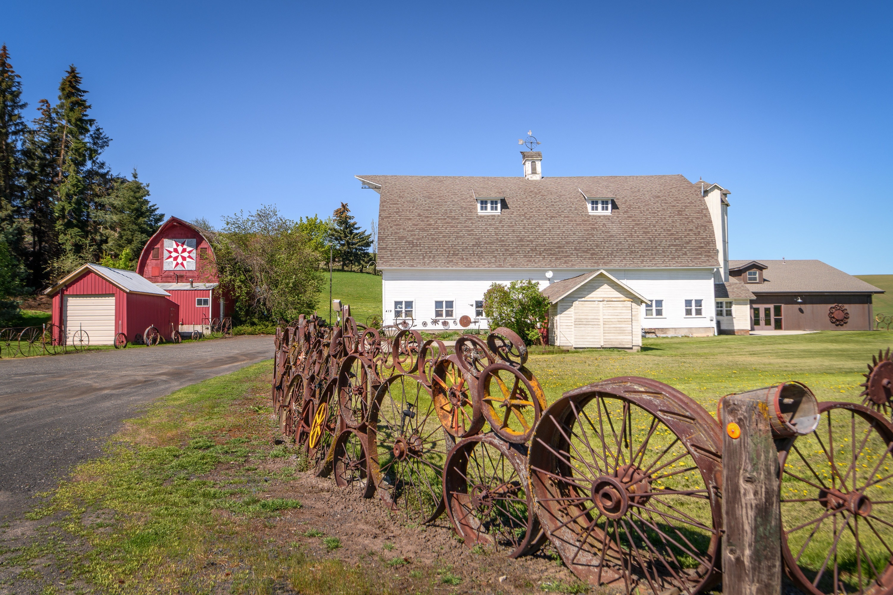 Under the country blue sky and sprawling fields, my heart swells with a sense of connection as I stand in front of these two classic red and white barns near Uniontown, WA. For about 15 years, we called this area home. The white barn housed some of my kids’ art classes by talented artisans.